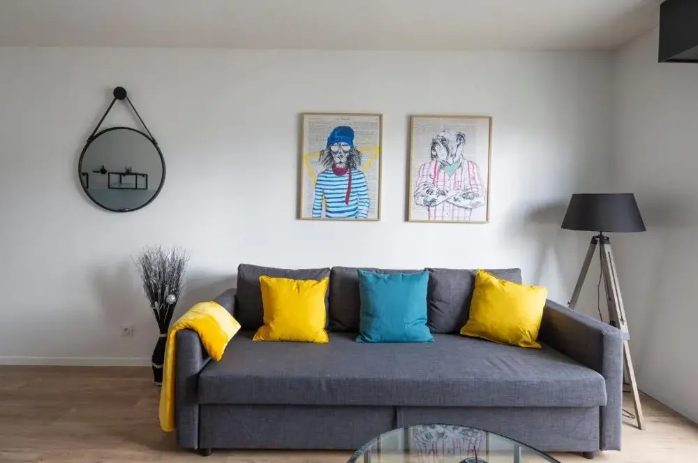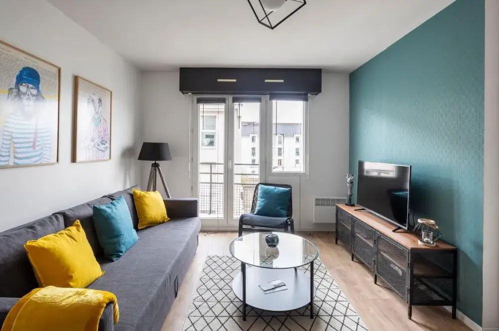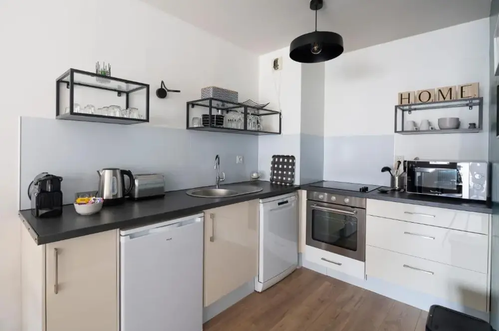 The location of the apartment, on a very quiet pedestrian street, and very close to the center, and the apartment is very comfortable, with a dining room and a very wide bedroom